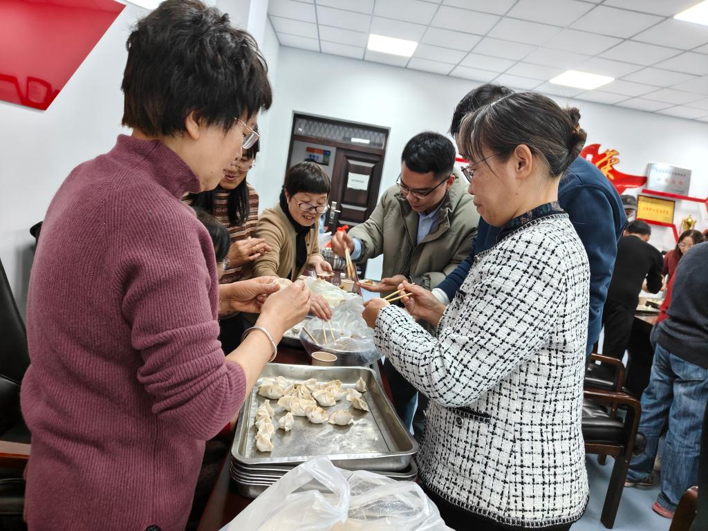 游园会结束,喜欢安静休闲的同事们一起玩牌,享受悠闲的时光;喜爱美食的同事们聚在一起,发挥自己的创意,包出代表地域特色各种形状的饺子,此刻美好,永铭于心。